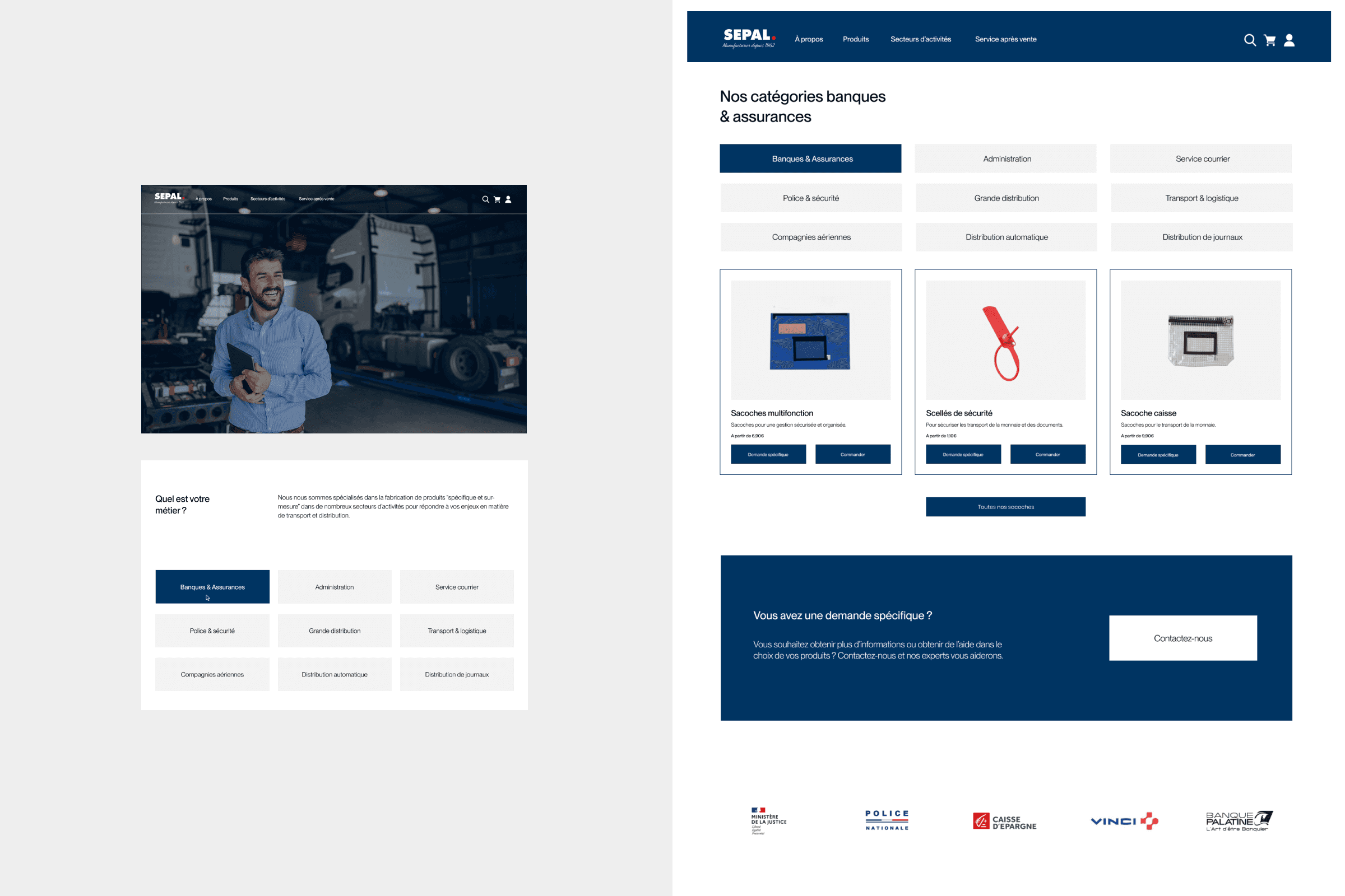 Le site internet était un catalogue virtuel. Il présentait les produits, mais sans réellement valoriser l’expertise de SEPAL ni donner envie d’aller plus loin. La navigation manquait de clarté, le parcours n’était pas pensé pour convertir, et l’image globale ne reflétait pas le niveau de qualité des produits. L’enjeu : moderniser l’expérience, renforcer la crédibilité et transformer le site en véritable canal de vente.
